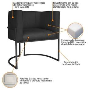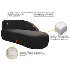 Kit Divã Luna 185cm Lado Direito E 01 Poltrona Base De Ferro Preto Suede Cor Preto