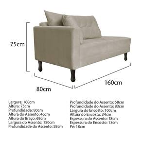 Kit Diva Recamier Azura 160cm Lado Direito E 02 Poltronas Classic Linho - Doce Sonho Móveis Cor Bege