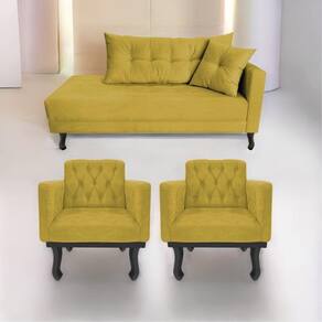 Kit Diva Recamier Azura 160Cm Lado Esquerdo E 02 Poltronas Classic Suede - Doce Sonho Móveis Amarelo - Preto