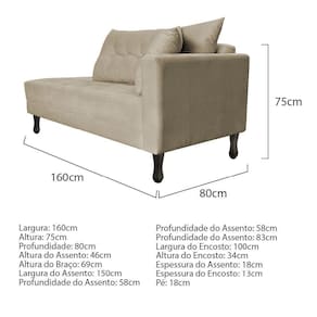 Especificações Técnicas do Kit Recamier Azura 160cm Lado Esquerdo e 02 Poltronas Classic: