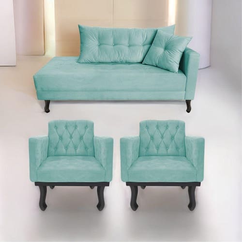 - O Kit Recamier Azura 160cm Lado Esquerdo e 02 Poltronas Classic chegará montada para você, bastando rosquear os pés;