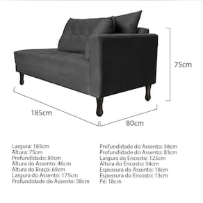 Especificações Técnicas do Kit Recamier Azura 185cm Lado Esquerdo e 02 Poltronas Classic: