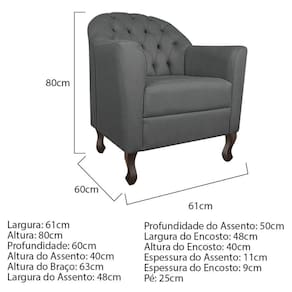 - Tipo de Assento: estofado e com espuma de densidade D-18 (Divã Diana), D-26 (Poltrona Julia);
