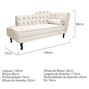 Especificações Técnicas do Kit Recamier Diana 140cm Lado Esquerdo e 01 Poltrona Classic: