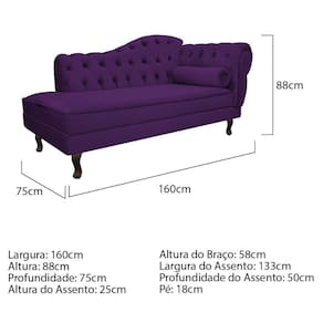 Kit Diva Recamier Diana 160cm Lado Esquerdo E 01 Poltrona Classic Suede - Doce Sonho Móveis Cor Roxo
