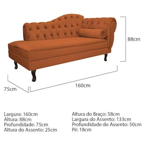 Especificações Técnicas do Kit Recamier Diana 160cm Lado Esquerdo e 02 Poltronas Julia: