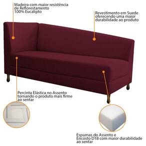 Kit Diva Recamier Heitor 140cm Lado Direito E 02 Poltronas Luiza Suede - Doce Sonho Móveis Cor Bordô