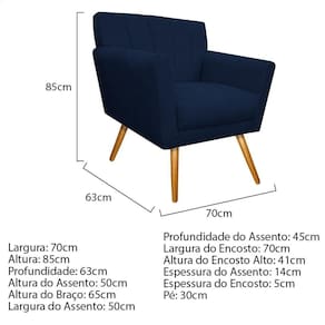 Kit Diva Recamier Vanessa 140Cm Lado Direito E 02 Poltronas Laura Suede Cor Azulmarinho - Blush