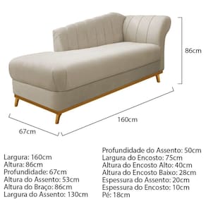 Especificações Técnicas do Kit Recamier Vanessa 160cm Lado Esquerdo e 02 Poltronas Laura:
