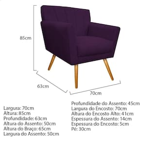 Kit Diva Recamier Vanessa 160cm Lado Esquerdo E 02 Poltronas Laura Suede - Doce Sonho Móveis Cor Roxo