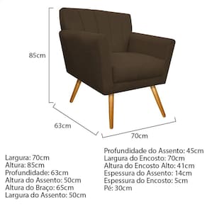- O Kit Recamier Vanessa 185cm Lado Direito e 02 Poltronas Laura chegará montada para você, bastando rosquear os pés;