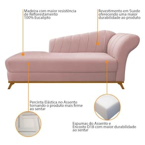 Kit Diva Recamier Vanessa 185cm Lado Esquerdo E 02 Poltronas Laura Suede - Doce Sonho Móveis Cor Rosê