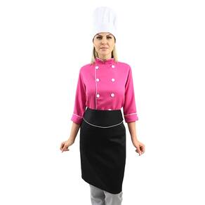 Kit Dolmã 3/4 Chapéu avental chef de cozinha feminino - G - Rosa