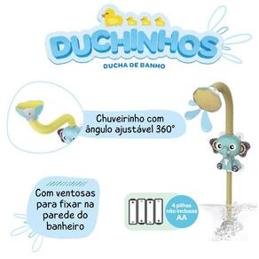 Comprando neste anúncio, você garante um mimo especial para tornar a hora do banho ainda mais divertida: um kit super fofo com bichinhos de borracha que fazem barulho ao apertar Ideal para entreter, estimular os sentidos e transformar o banho em um momento de alegria para os pequenos. Agora, falando da estrela do show... A Duchinha de Banho Infantil - Elefantinho foi pensada para deixar o banho mais prático, seguro e cheio de diversão Seu design lúdico com carinha de elefante encanta os pequenos e ajuda os papais e mamães na hora de lavar com carinho. Com chuveirinho de ângulo ajustável em 360, essa duchinha é super versátil e fácil de manusear. Ela possui ventosas para fixação segura na parede do banheiro e um sistema de bombeamento eficiente e protegido, garantindo tranquilidade durante o uso. Além disso, funciona com 4 pilhas AAA não inclusas , facilitando o uso mesmo fora do chuveiro, em banheiras ou piscinas infláveis, por exemplo. Ideal para bebês a partir dos 4 meses, essa duchinha é um verdadeiro aliado para tornar o banho um momento de conexão e alegria. Dimensões aproximadas: 67 x 10 x 5 cm Utiliza 4 pilhas AAA não inclusas Indicação: a partir de 4 meses Sobre o mimo especial incluso: Kit com bichinhos que fazem barulho ao serem apertados, produzidos em plástico seguro, livre de BPA e ftalatos. Acompanha uma mini banheirinha para guardar e brincar com os bichinhos durante o banho. Um toque extra de fofura e diversão que vai conquistar os pequenos Marca: Não Informado Ean: 7795028369293