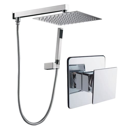 Ducha articulável slim em metal medindo 20X20 e braço de chuveiro quadrado