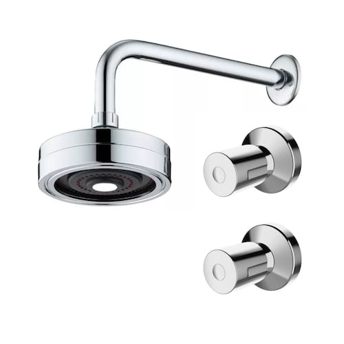 Ducha articulável com sistema autolimpante em ABS e braço de chuveiro redondo metal de parede, com acabamento cromado brilhante de alta durabilidade, resistência e livre de ferrugem;