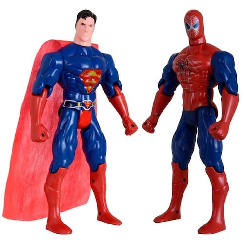 Características Gerais do Produto: - Material: Plástico - Modelo: Super Men / Homem Aranha - Cor: Azul; Vermelho - Dimensões aproximadas: Altura 29 cm Garantia: - Garantia contra no