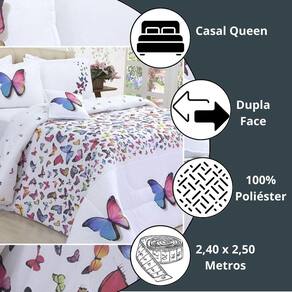 Kit Edredom Casal Queen Borboletas Dupla Face 4 Peças Micropercal Variação: Branco Olá Seja bem-vindo a à Atual Ecommerce, onde transformar sua cama em um refúgio de conforto e beleza é a nossa missão. Se você ama quartos com um toque romântico e busca praticidade sem abrir mão da elegância, vai se apaixonar pelo nosso Kit 4 Peças Edredom Casal Queen Borboletas Dupla Face em Micropercal. Já sentiu que falta aconchego e beleza ao seu quarto Muitas pessoas enfrentam esse dilema - camas sem graça ou edredons que não aquecem direito. Pensando nisso, criamos um conjunto completo que alia funcionalidade, conforto e um visual encantador. E o melhor: com ótimo custo-benefício Por que você vai amar esse produto 1. Conforto em dobro com tecido micropercal: Toque suave, maciez e durabilidade para noites mais tranquilas. 2. Estilo e delicadeza com estampa de borboletas: Clientes elogiam o charme romântico e a leveza que ele traz ao ambiente. 3. Praticidade do kit completo: Porta-travesseiros e capa de almofada combinando. Cama posta com rapidez e sem complicações. Especificações técnicas: 01 Edredom Dupla Face: 2,40 m x 2,50 m 02 Porta-travesseiros: 70 cm x 50 cm 01 Capa de Almofada: 40 cm x 40 cm Tecido Superior: Micropercal 100% Poliéster Tecido Inferior: 100% Poliéster Enchimento: Manta Siliconada 100% Poliéster Indicado para: Cama Casal Queen Acabamento: Costura reforçada, visual sofisticado : 3 meses contra defeito de fabricação Nossa proposta é simples: Mais conforto. Mais beleza. Mais você. E atenção: estamos com limitado. Garanta já o seu kit e transforme suas noites Clique em comprar agora Agradecemos sua visita. Conte com a Atual Ecommerce para deixar sua casa mais acolhedora. Marca: Não Informado