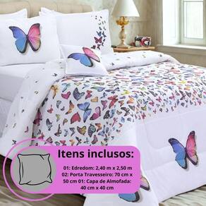 Kit Edredom Casal Queen Borboletas Dupla Face 4 Peças Micropercal Variação: Branco Olá Seja bem-vindo a à Atual Ecommerce, onde transformar sua cama em um refúgio de conforto e beleza é a nossa missão. Se você ama quartos com um toque romântico e busca praticidade sem abrir mão da elegância, vai se apaixonar pelo nosso Kit 4 Peças Edredom Casal Queen Borboletas Dupla Face em Micropercal. Já sentiu que falta aconchego e beleza ao seu quarto Muitas pessoas enfrentam esse dilema - camas sem graça ou edredons que não aquecem direito. Pensando nisso, criamos um conjunto completo que alia funcionalidade, conforto e um visual encantador. E o melhor: com ótimo custo-benefício Por que você vai amar esse produto 1. Conforto em dobro com tecido micropercal: Toque suave, maciez e durabilidade para noites mais tranquilas. 2. Estilo e delicadeza com estampa de borboletas: Clientes elogiam o charme romântico e a leveza que ele traz ao ambiente. 3. Praticidade do kit completo: Porta-travesseiros e capa de almofada combinando. Cama posta com rapidez e sem complicações. Especificações técnicas: 01 Edredom Dupla Face: 2,40 m x 2,50 m 02 Porta-travesseiros: 70 cm x 50 cm 01 Capa de Almofada: 40 cm x 40 cm Tecido Superior: Micropercal 100% Poliéster Tecido Inferior: 100% Poliéster Enchimento: Manta Siliconada 100% Poliéster Indicado para: Cama Casal Queen Acabamento: Costura reforçada, visual sofisticado : 3 meses contra defeito de fabricação Nossa proposta é simples: Mais conforto. Mais beleza. Mais você. E atenção: estamos com limitado. Garanta já o seu kit e transforme suas noites Clique em comprar agora Agradecemos sua visita. Conte com a Atual Ecommerce para deixar sua casa mais acolhedora. Marca: Não Informado