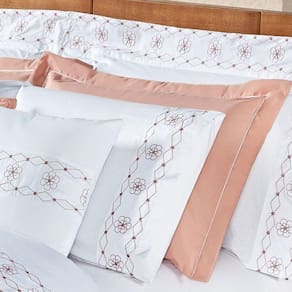 bordado, que adiciona um toque de sofisticação e requinte à decoração. O toque extremamente macio e sedoso do tecido proporciona noites de sono mais aconchegantes, vestindo sua cama de forma completa e harmoniosa.