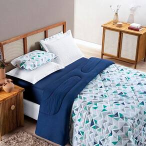 Kit Edredom Grace Queen 01 Peça 100% Algodão Dupla Face Extra Macio Estampado - Azul Geométrico