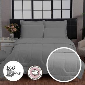 Kit Edredom Italiano3 Peças 100% Algodão Dupla Face Casa Dona - Cinza