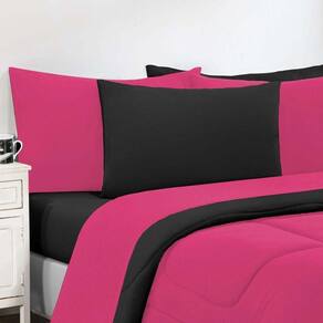 Kit Edredom + Jogo De Lençol Malha 100% Algodão Gran Moratta 6 Peças Queen - Pink /preto