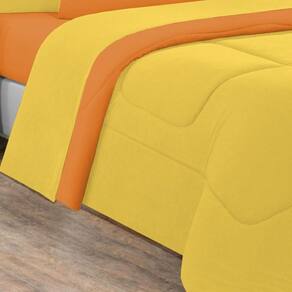 Kit Edredom + Jogo De Lençol 100% Algodão Gran Moratta 7 Peças Queen Amarelo-laranja - Única