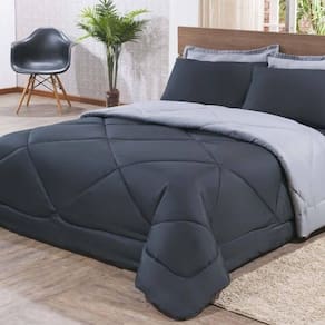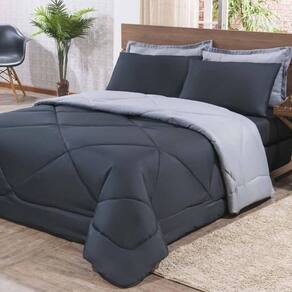 Kit Edredom + Jogo De Lençol Aconchego Look House Dupla Face Casal King 06 Peças - Preto/ Cinza
