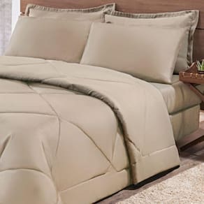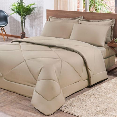 Kit Edredom + Jogo De Lençol Aconchego Look House Dupla Face Casal Queen 06 Peças - Caqui O Kit Look House, traz para seu ambiente um conjunto de roupas de cama com todas as peças que você precisa para deixar seu ambiente aconchegante, sem contar o conforto para as noites de sono. Produto composto por:01 Edredom 2,50m x 2,20m01 Lençol de baixo c/ elástico para colchão de 1,58m x 1,98m x 0,30cm02 Porta travesseiros 70cm x 50cm02 Fronhas de 70cm x 50cm Composição tecido: 80% Algodão / 20% Poliéster Ean: 7908618405893