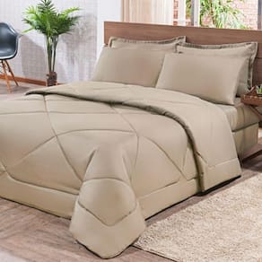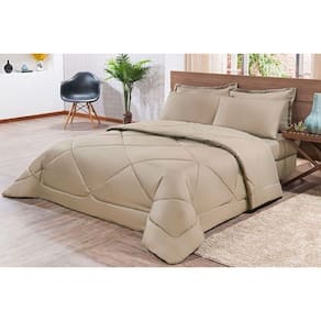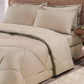 Kit Edredom + Jogo De Lençol Aconchego Look House Dupla Face Casal Queen 06 Peças - Caqui - Única