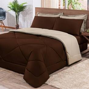 Kit Edredom + Jogo De Lençol Aconchego Look House Dupla Face Casal Queen 06 Peças - Marrom E Caqui - Única