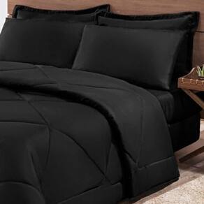 Kit Edredom + Jogo De Lençol Aconchego Look House Dupla Face Casal Queen 06 Peças - Preto