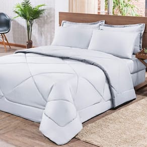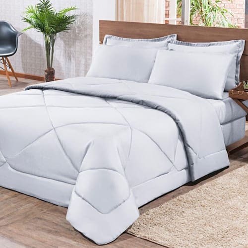 Kit Edredom + Jogo De Lençol Aconchego Look House Dupla Face Solteiro 04 Peças - Branco
