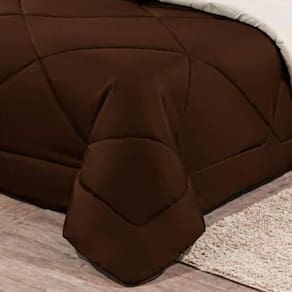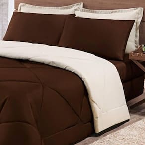 Kit Edredom + Jogo De Lençol Aconchego Look House Dupla Face Solteiro 04 Peças - Marrom/ Palha