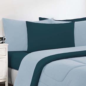 Marca: Enxovais Davy | Estampa: Não se Aplica | Medidas: 01 Edredom Casal Dupla Face Liso 2,00m x 2,20m02 Porta Travesseiros 70cm x 50cm01 Lençol Casal Avulso de Baixo para colchão 1,38x1,98x0,30 (Elástico na volta toda)02 Fronhas 50cm x 70cm | Número de Peças: 06 Peças | Material: Agodão | Cor Predominante: Azul Bebê/Azul Petróleo | Cama Indicada: Casal