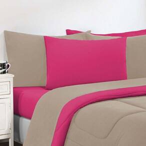 Kit Edredom + Jogo De Lençol Malha 100% Algodão Gran Moratta 4 Peças Solteiro - Avelã/pink