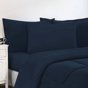 Kit Edredom + Jogo De Lençol Malha 100% Algodão Gran Moratta 4 Peças Solteiro - Azul Marinho/azul Marinho