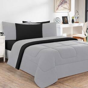Kit Edredom + Jogo De Lençol Malha 100% Algodão Gran Moratta 4 Peças Solteiro - Cinza/preto