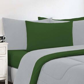 Kit Edredom + Jogo De Lençol Malha 100% Algodão Gran Moratta 4 Peças Solteiro - Cinza/verde Bandeira