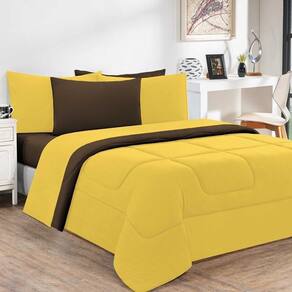 Marca: Enxovais Davy | Estampa: Não se Aplica | Medidas: 01 Edredom Solteiro Dupla Face Liso 1,60m x 2,40m01 Porta Travesseiro 70cm x 50cm01 Lençol de Cima 1,60m x 2,40m 01 Lençol de Baixo para Colchão 0,88m x 1,88m x 0,30m (Elástico em toda a volta)01 Fronha 70cm x 50cm | Número de Peças: 05 Peças | Material: Agodão | Cor Predominante: Amarelo/Marrom | Cama Indicada: Solteiro