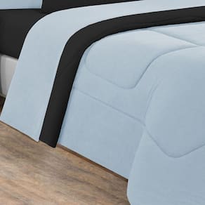 Kit Edredom + Jogo De Lençol Malha 100% Algodão Gran Moratta 5 Peças Solteiro - Azul Bebê/preto