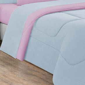 Marca: Enxovais Davy | Estampa: Não se Aplica | Medidas: 01 Edredom Solteiro Dupla Face Liso 1,60m x 2,40m01 Porta Travesseiro 70cm x 50cm01 Lençol de Cima 1,60m x 2,40m 01 Lençol de Baixo para Colchão 0,88m x 1,88m x 0,30m (Elástico em toda a volta)01 Fronha 70cm x 50cm | Número de Peças: 05 Peças | Material: Agodão | Cor Predominante: Azul Bebê/Rosa Bebê | Cama Indicada: Solteiro