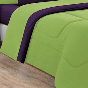 Kit Edredom + Jogo De Lençol Malha 100% Algodão Gran Moratta 5 Peças Solteiro - Verde Pistache-roxo - Única