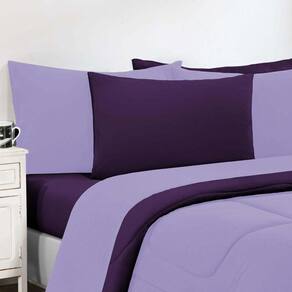 Kit Edredom + Jogo De Lençol Malha 100% Algodão Gran Moratta 6 Peças Casal - Lilás/roxo
