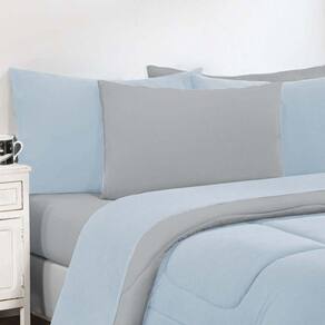 Kit Edredom + Jogo De Lençol Malha 100% Algodão Gran Moratta 6 Peças King - Azul Bebê-cinza - Única