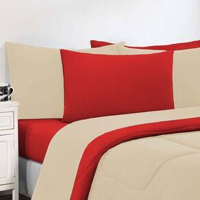 Kit Edredom + Jogo De Lençol Malha 100% Algodão Gran Moratta 6 Peças King - Palha -vermelho - Única