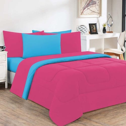 Kit Edredom + Jogo De Lençol Malha 100% Algodão Gran Moratta 6 Peças King - Pink /azul Turquesa