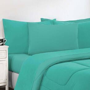 Kit Edredom + Jogo De Lençol Malha 100% Algodão Gran Moratta 6 Peças King - Verde Jade-verde Jade - Única