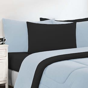 Kit Edredom + Jogo De Lençol Malha 100% Algodão Gran Moratta 7 Peças Casal - Azul Bebê/preto